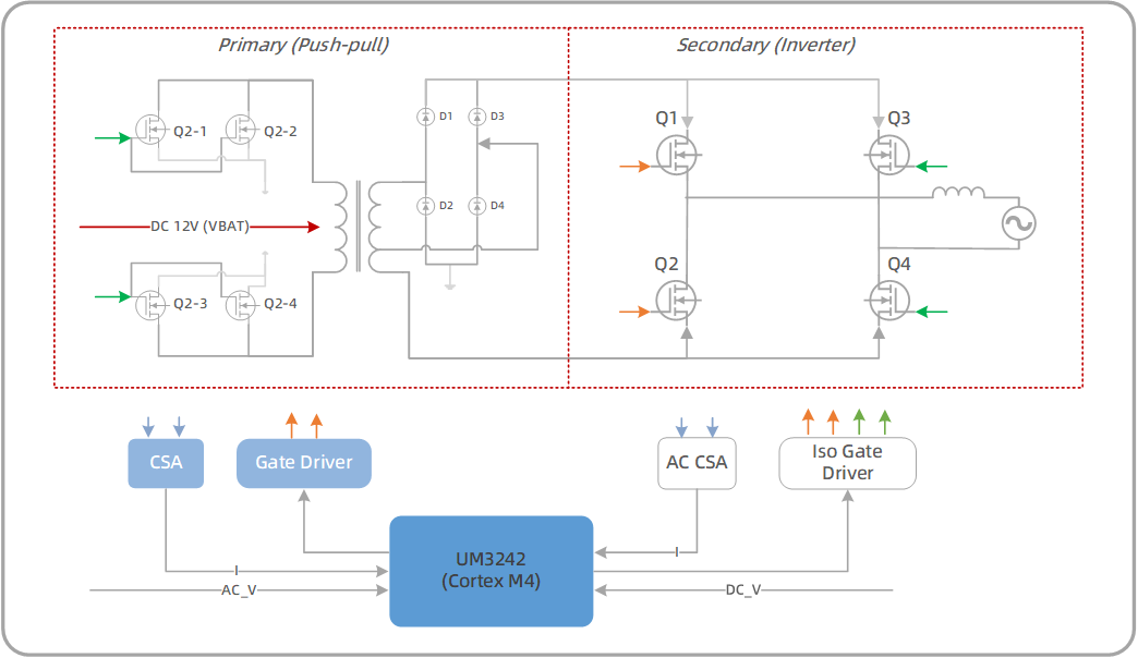 ARM Cortex-M4,最高主频204MHz(240MHz@boost mode) 50路 PWM 输出 2个12位ADC,16通道,支持单端和差分输, 最高采样率 5.25Msps 1个10M/100M/1000M以太网控制器(RGMII/RMII/MII 接口) Cordic加速器(sin、cos、arctan、平方根、乘 法、除法等)